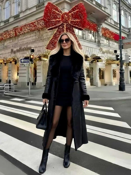 Vienna Luxe™ | Coat with Faux Fur Trim – Women's Faux Fur Coat Long Sleeve Medium-Length Jacket